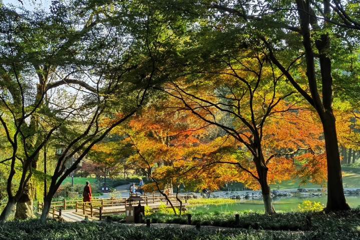 杭州的秋天姗姗来迟,秋日里,草木凋得慢,空气来得润,天空的颜色显得淡……