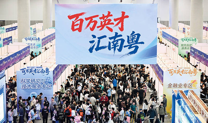 在广州举办的“百万英才汇南粤”2026 年春季大型综合招聘会现场(2026 年3 月 15 日摄) 邓华摄 / 本刊