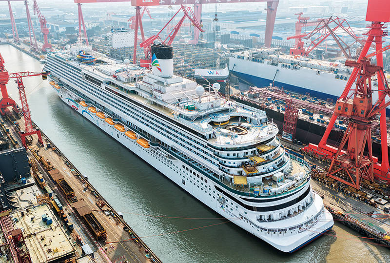 第二艘国产大型邮轮“爱达 · 花城号”在上海出坞(2026 年 3 月 19 日摄) 丁汀摄 / 本刊提升产业优势坚定自主发展
