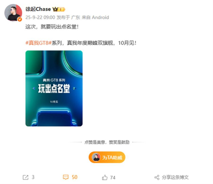 今日,真我正式官宣了GT8系列新机的发布计划,预计将于10月发布。这一系列包括GT8和GT8 Pro两款年度旗舰,宣称将“越级进行到底”银川股票配资,引发了用户和业内的广泛关注。真我副总裁徐起此前表示,真我GT8 Pro将是一款经过大幅改进的旗舰手机,涵盖外观设计、核心技术以及用户体验等多个维度的全面革新。