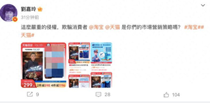 对于刘嘉玲指其侵权的说法,10日下午,“ENCARE海外旗舰店”客服人员回复红星资本局称,已经向品牌方反馈此事,并表示其品牌赞助了一档名为《大片很好看》的综艺节目,有(上述明星肖像)的使用权,目前品牌方正在和节目组沟通。
